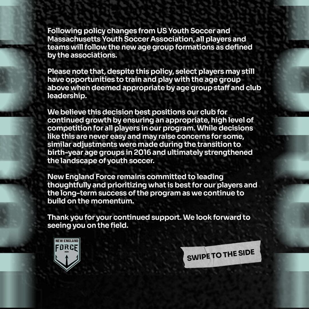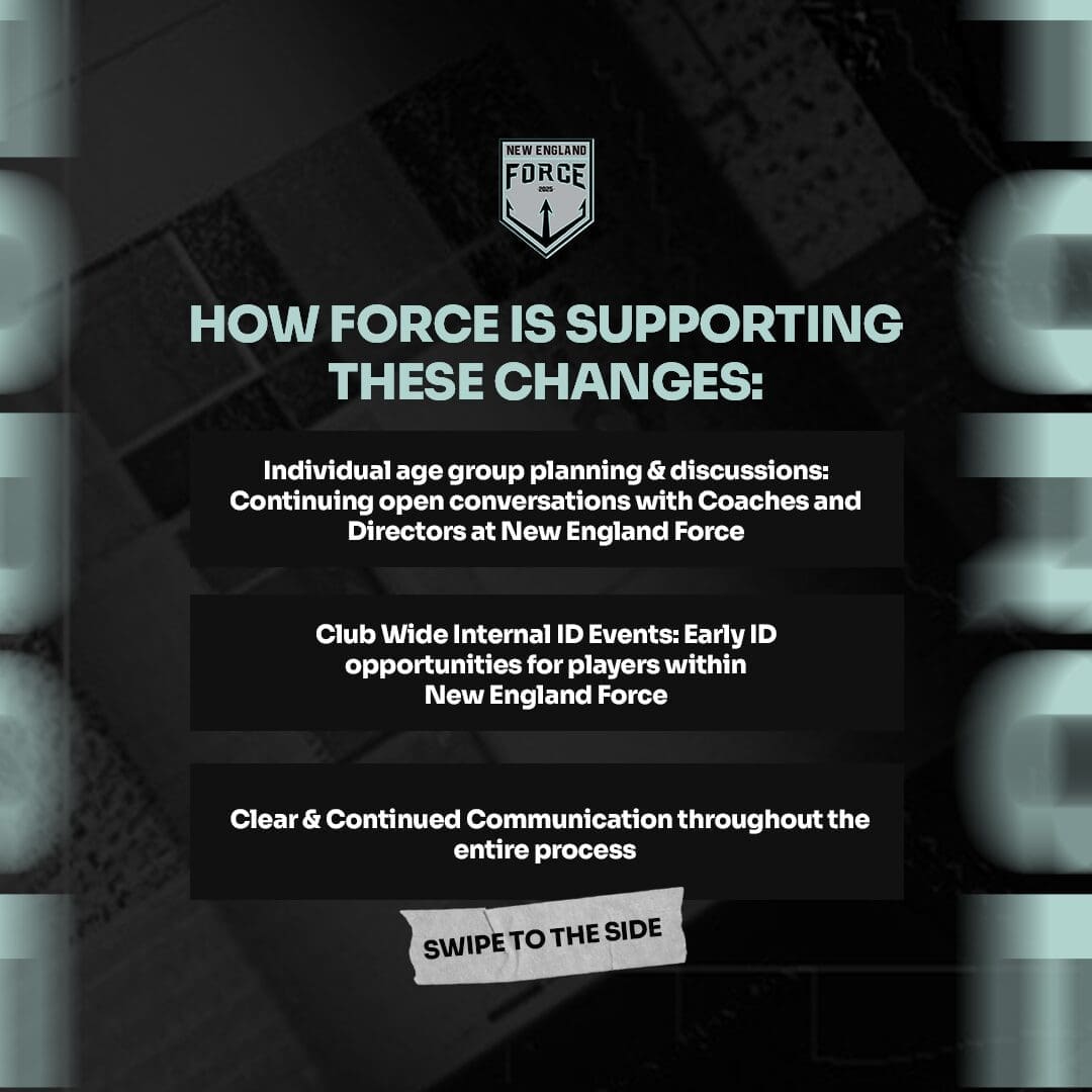 At New England Force, we are handling all policy changes in regards to team formations with careful thought and consideration while keeping the best interest of the athletes at the front of mind. We encourage and recommend all families to utilize the resources within the club to answer any questions that you might have. In addition to your team coach and Age Group Coordinator, we encourage you to reach out directly to the Boys and Girls Directors.